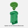 Very low-drift, compact airinjector off center nozzle for border application and banding.