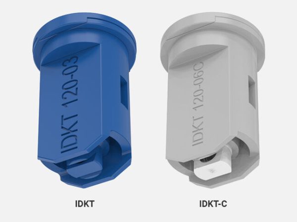 Very low-drift, air-injector twin flat spray nozzle for optimized deposition and reduced spray shadow.